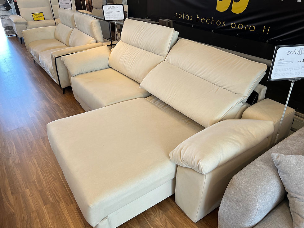 En Sofassimo estamos constantemente renovando nuestras exposiciones, lo que es una oportunidad inmejorable para conseguir tu sofá, mueble o complemento con grandes descuentos y con entrega express. Tanto en nuestra web, como en nuestra tienda siempre puedes encontrar artículos rebajados y tienes la posibilidad de verlos al natural para ver si te encajan.